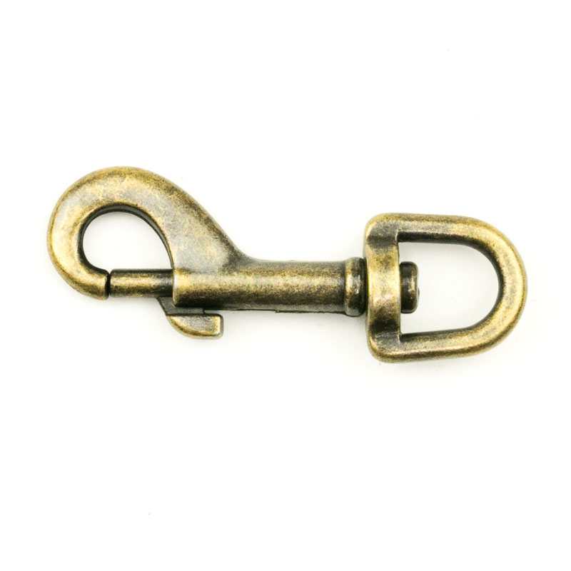 Mittelgroßer Bolzenkarabiner aus Metall für bis zu 10 mm breite Bänder und Kordeln. Karabinerlänge: 55 mm