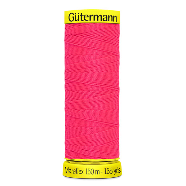 Gütermann Maraflex ist ein elastischer Nähfaden für die Herstellung hochelastischer Nähte. Auf einer Rolle befinden sich 150m Nähfaden aus 100 % Polybutylenterephthalat (PBT).