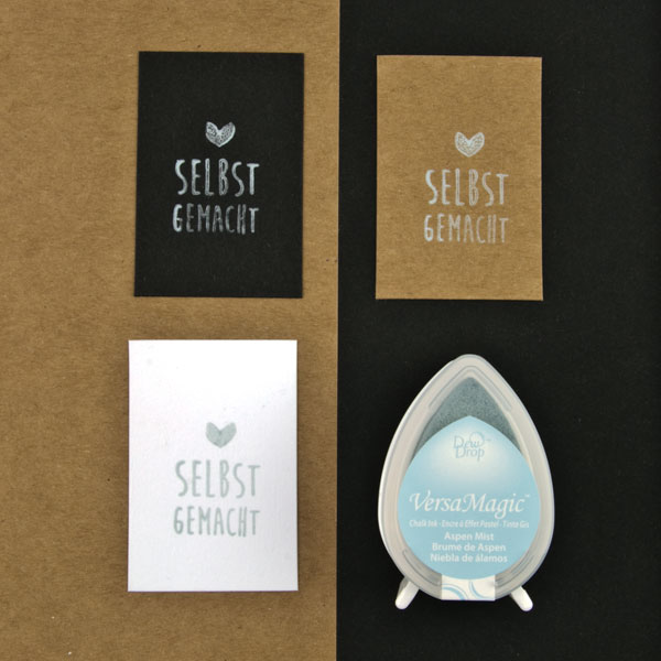 Die VersaMagic Stempeltinte eignet sich bestens für beschichtetes- und unbeschichtetes Papier, Cardstock Papier, Karton, unbehandeltes Holz und Ton.
