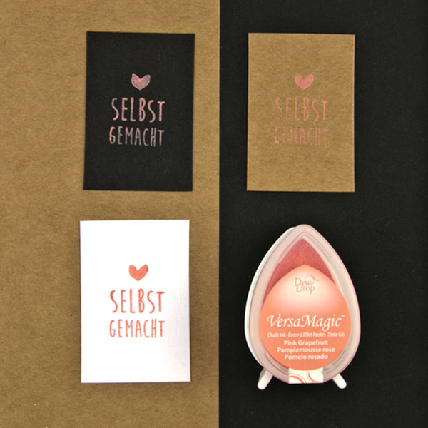 Die VersaMagic Stempeltinte eignet sich bestens für beschichtetes- und unbeschichtetes Papier, Cardstock Papier, Karton, unbehandeltes Holz und Ton.
