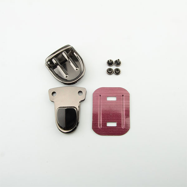 Mappenschloss mit 3 Teilen und 2 Nieten. Das Steckschloss eignet sich für Taschen, Portemonnaies und mehr. Die für die Montage des Steckschlosses benötigten Nieten sind im Lieferumfang enthalten. Das Mappenschloss ist ca. 30mm breit und ca. 40mm hoch.