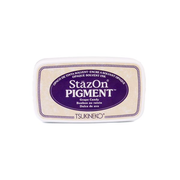 StazOn Pigment Stempelkissen der japanischen Marke Tsukineko mit schnell trocknender Stempelfarbe auf Lösemittelbasis. Der Unterschied zum klassischen StazOn-Stempelkissen liegt in der höheren Pigmentierung der StazOn-Pigment Stempelfarbe. Durch die höhere Pigmentierung sind die Farben der StazOn-Pigment Stempelkissen deckender.