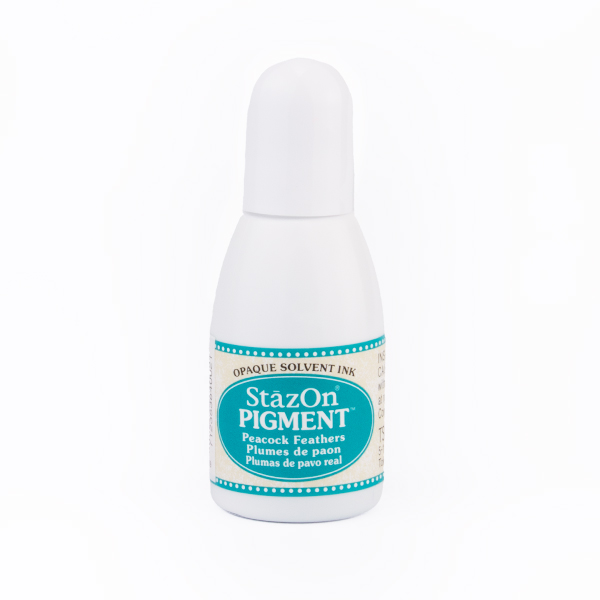 Nachfülltinte für unsere StazOn Pigment Stempelkissen der japanischen Marke Tsukineko mit schnell trocknender Stempelfarbe auf Lösemittelbasis. Der Unterschied zum klassischen StazOn-Stempelkissen liegt in der höheren Pigmentierung der StazOn-Pigment Stempelfarbe. Durch die höhere Pigmentierung sind die Farben der StazOn-Pigment Stempelkissen deckender.