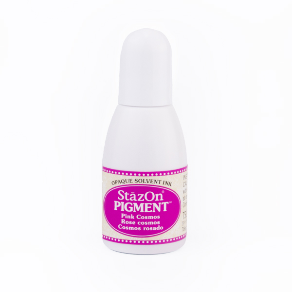 Nachfülltinte für unsere StazOn Pigment Stempelkissen der japanischen Marke Tsukineko mit schnell trocknender Stempelfarbe auf Lösemittelbasis. Der Unterschied zum klassischen StazOn-Stempelkissen liegt in der höheren Pigmentierung der StazOn-Pigment Stempelfarbe. Durch die höhere Pigmentierung sind die Farben der StazOn-Pigment Stempelkissen deckender.