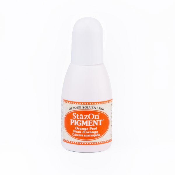 Nachfülltinte für unsere StazOn Pigment Stempelkissen der japanischen Marke Tsukineko mit schnell trocknender Stempelfarbe auf Lösemittelbasis. Der Unterschied zum klassischen StazOn-Stempelkissen liegt in der höheren Pigmentierung der StazOn-Pigment Stempelfarbe. Durch die höhere Pigmentierung sind die Farben der StazOn-Pigment Stempelkissen deckender.