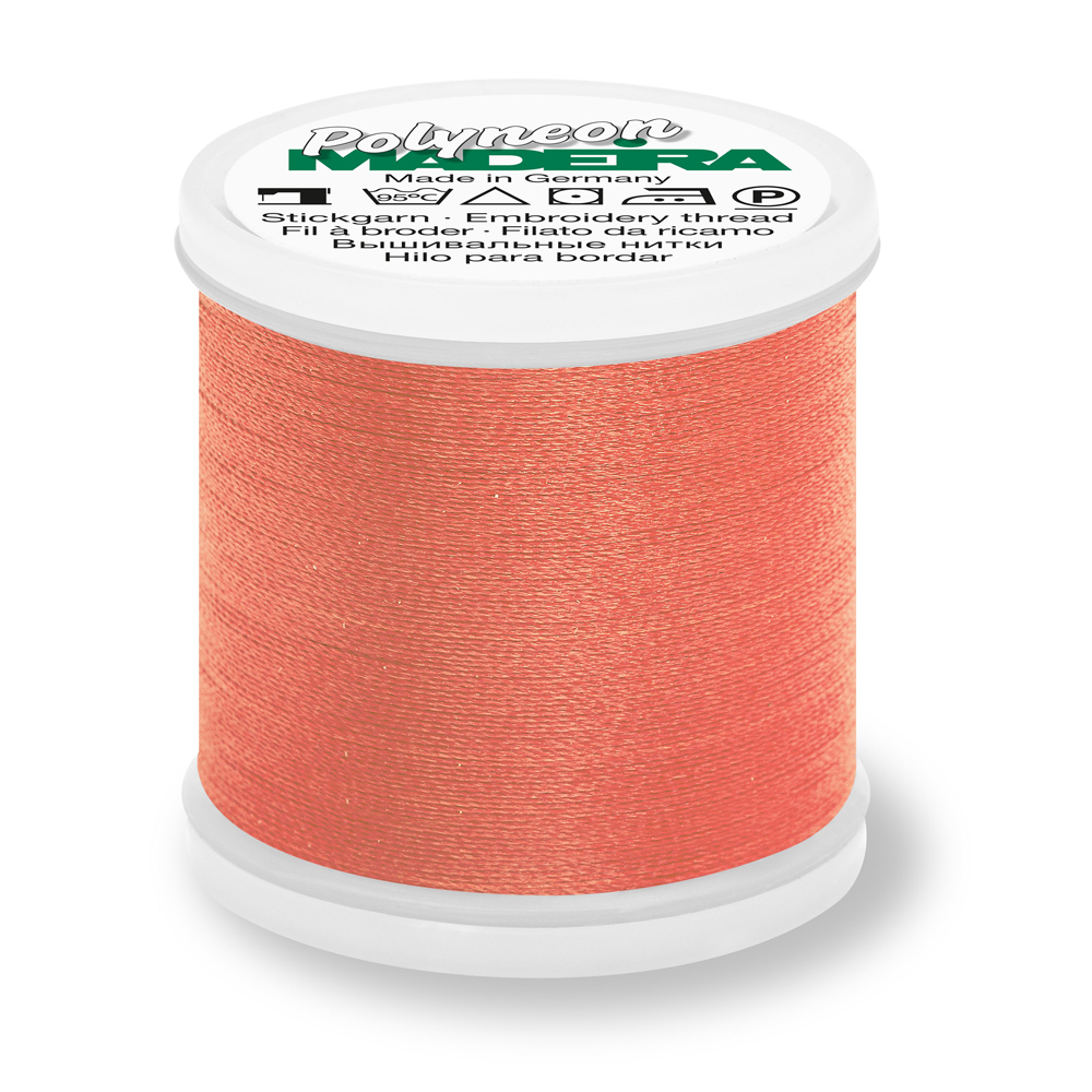 400 Meter Universelles Maschinenstickgarn aus reißfestem Polyesterfilament für alle Stickmotive. Madeira Polyneon ist langlebig und strapazierfähig und eignet sich daher bestens für stark beanspruchte Textilien wie Sport-, Outdoor- und Kinderbekleidung.