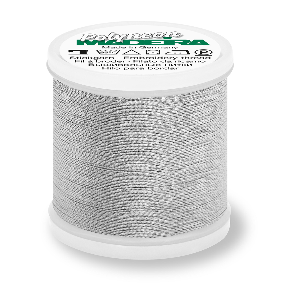 400 Meter Universelles Maschinenstickgarn aus reißfestem Polyesterfilament für alle Stickmotive. Madeira Polyneon ist langlebig und strapazierfähig und eignet sich daher bestens für stark beanspruchte Textilien wie Sport-, Outdoor- und Kinderbekleidung.