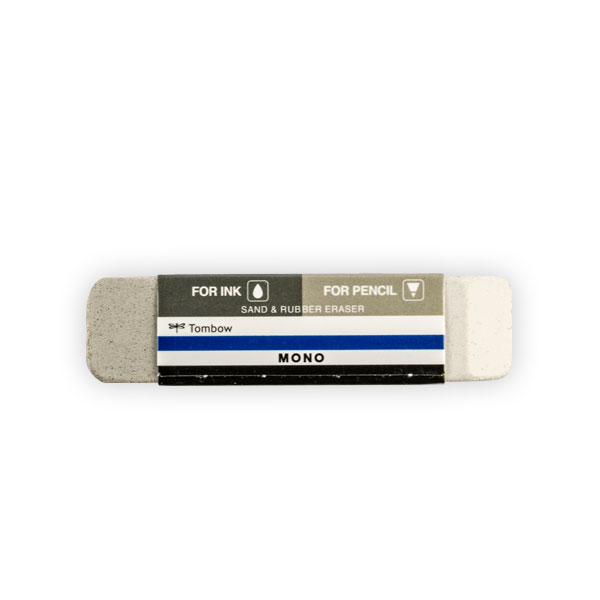 Eine helle Seite ermöglicht das Radieren von Bleistiften, eine dunkle Seite enthält feine Sandpartikel und ermöglicht das Radieren von Tinte. - Naturkautschuck