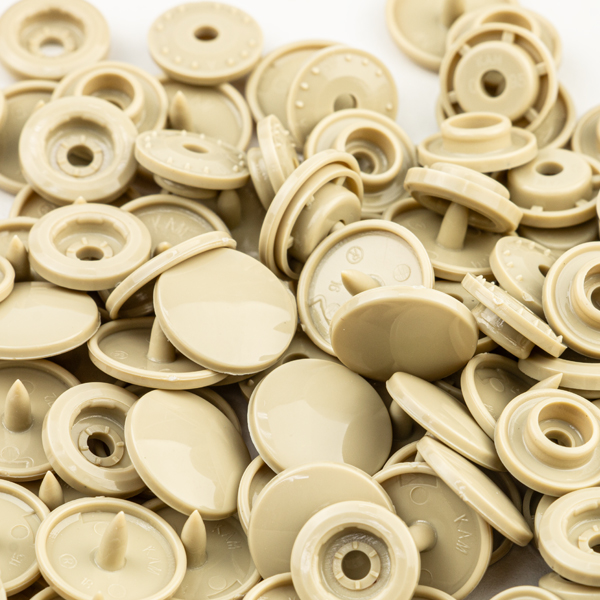 25 Paar original Kam Snap Druckknöpfe aus Kunststoff. Ein Druckknopf besteht aus 2 Kappen und 2 Verschlussteilen. Die Kam Snaps lassen sich mit einer Kam Snap Zange kinderleicht an vielen Textilien befestigen.