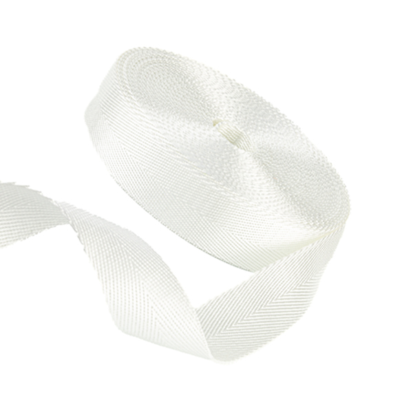 Glattes Polyester-Gurtband mit Fischgrät-Optik. Das Band ist ca. 1mm stark und eignet sich als Band für Taschen, Rucksäcke und Heimtextilien.