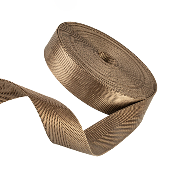 Glattes Polyester-Gurtband mit Fischgrät-Optik. Das Band ist ca. 1mm stark und eignet sich als Band für Taschen, Rucksäcke und Heimtextilien.