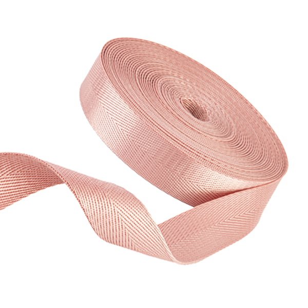 Glattes Polyester-Gurtband mit Fischgrät-Optik. Das Band ist ca. 1mm stark und eignet sich als Band für Taschen, Rucksäcke und Heimtextilien.
