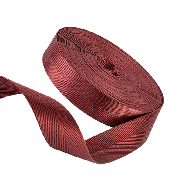 Glattes Polyester-Gurtband mit Fischgrät-Optik. Das Band ist ca. 1mm stark und eignet sich als Band für Taschen, Rucksäcke und Heimtextilien.