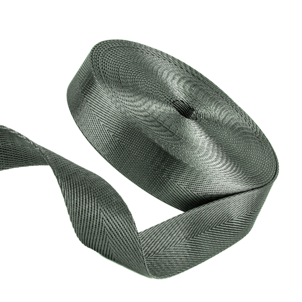 Glattes Polyester-Gurtband mit Fischgrät-Optik. Das Band ist ca. 1mm stark und eignet sich als Band für Taschen, Rucksäcke und Heimtextilien.