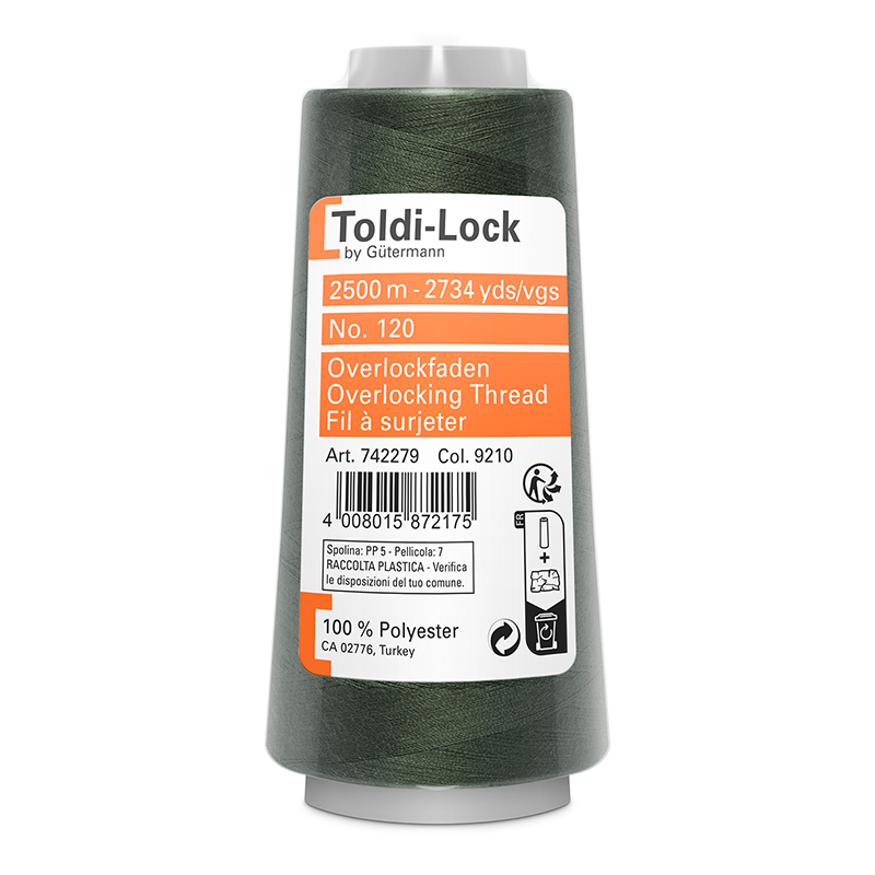 Das Toldi-Lock-Garn wird auf einer Spule mit einer Lauflänge von 2.500 Metern geliefert und kann sofort mit der Overlock- oder Coverlock-Maschine verarbeitet werden.