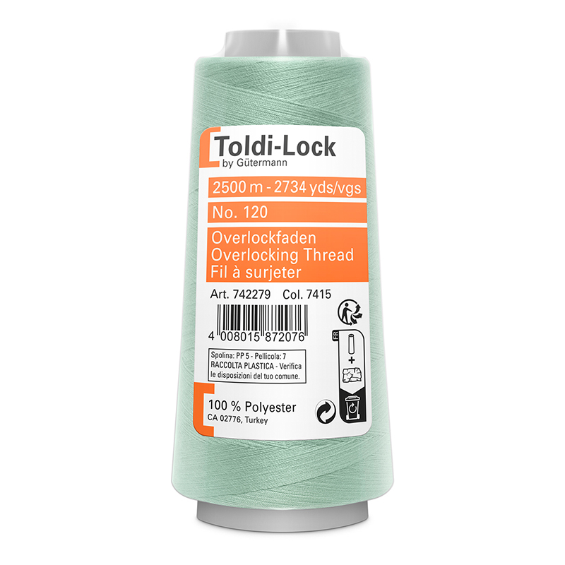 Das Overlockgarn Toldi-Lock by Gütermann ist ein Spezialnähfaden für alle Overlock- und Coverlock-Nähmaschinen. Mit dem Toldi-Lock-Garn lassen sich Overlocknähte, Coverlocknähte, Safetynähte und Flatlocknähnte erstellen.