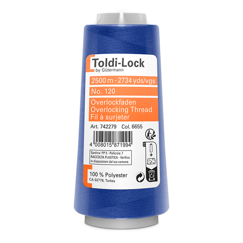 Das Overlockgarn Toldi-Lock by Gütermann ist ein Spezialnähfaden für alle Overlock- und Coverlock-Nähmaschinen. Mit dem Toldi-Lock-Garn lassen sich Overlocknähte, Coverlocknähte, Safetynähte und Flatlocknähnte erstellen.