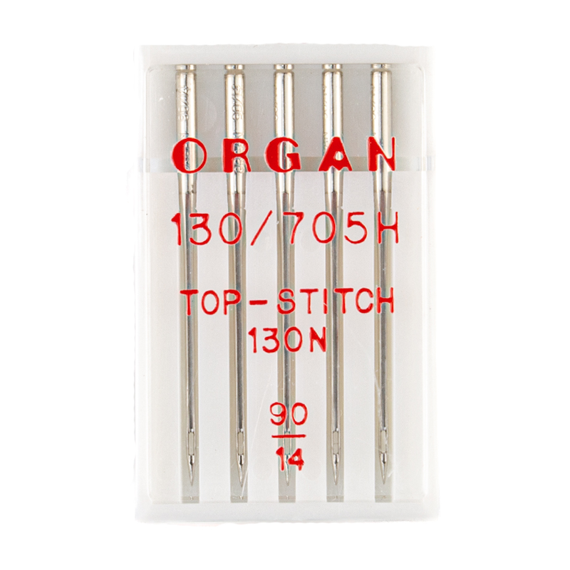 5 Nähmaschinennadeln der Marke ORGAN, Typ Top-Stitch Nachsticknadel Stärke 90 (130/705H).