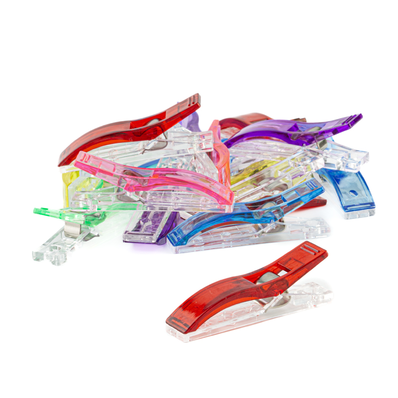 Extra große Stoffclips mit den Maßen 12x56 mm. Stoffklammern sind eine sehr gute Alternative zur Stecknadel. Die Stoff-Clips fixieren mehrere Stofflagen zuverlässig ohne den Stoff zu beschädigen.