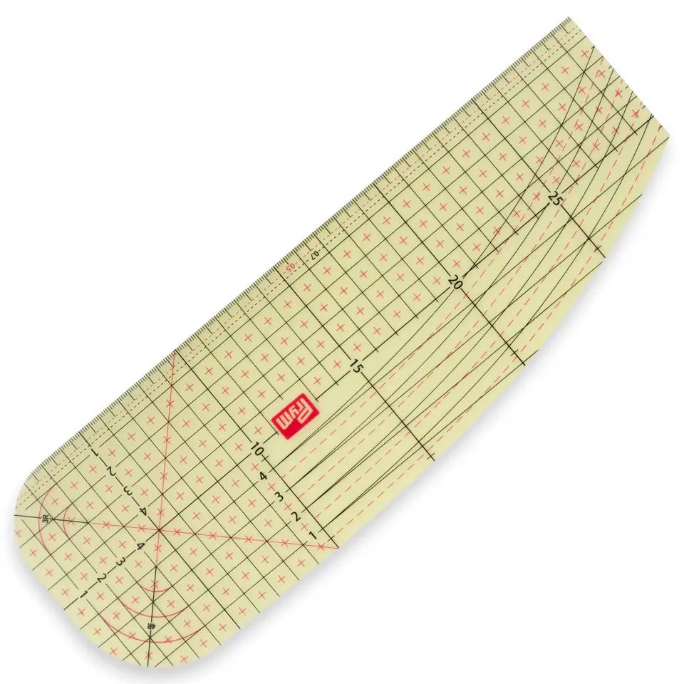 Das 30 x 10 cm große Bügellineal von Prym ist der perfekte Begleiter beim Nähen von Säumen. Egal ob gerade oder abgerundet: Das hitzebeständige Lineal hat eine lange gerade Kante mit rechtem Winkel sowie eine lange Kante mit sanfter Rundung. Zusätzlich erleichtern Radien mit 3 cm und 4 cm die Markierung von Kreisen. Drei Arbeitsschritte in einem: Messen, Markieren und Bügeln können zeitsparend zusammen erledigt werden. So ist die Nähvorbereitung von Säumen, Kanten und Nahtzugaben ganz einfach und schnell erledigt. Nur den Stoff auf passender Länge um das bügelbare Lineal legen und die Kante mit dem heißen Bügeleisen fixieren – fertig. Das besondere an diesem Bügellineal ist das hitzebeständige Harzmaterial. Es ermöglicht Bügeln bis zu 3 Punkten, je nach Stoffart. Das dünne transparente Lineal kann beliebig wiederverwendet werden.