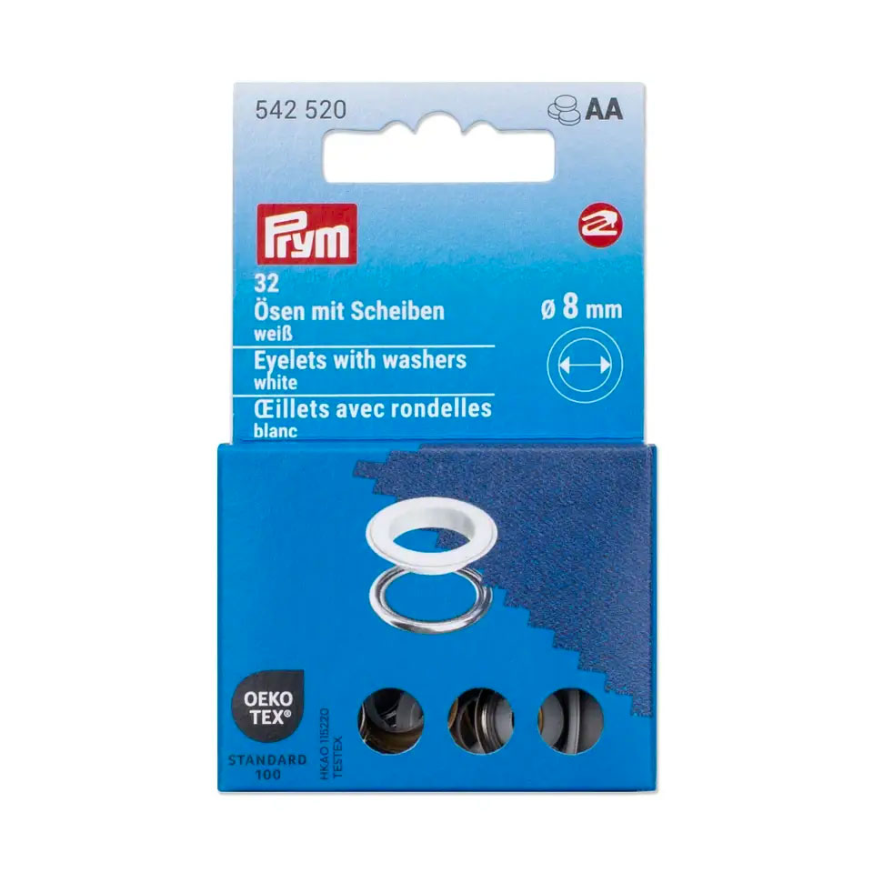 Prym Ösen mit Scheiben 8mm weiß 542520