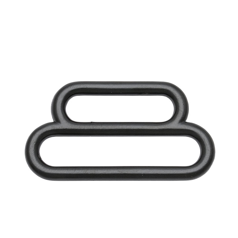 Verkleinernde Leiterschnalle aus Metall (Zink gegossen) mit festem Mittelsteg.
