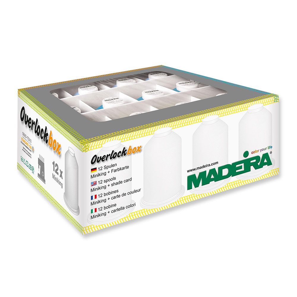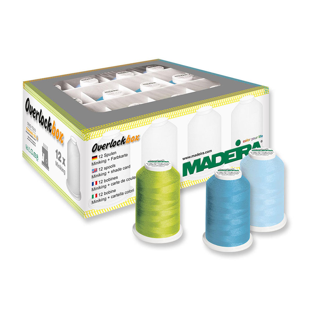 Die Madeira Overlockbox 3+1 enthählt drei Farben Aerolock und das dazu farblich abgestimmte Bauschgarn Aeroflock. Mit jeweils 3 Minikingspulen Aerolock und 1 Aeroflock zaubern Sie perfekte Cover- & Overlocknähte Ton in Ton. Aerolock ist ein feines Overlockgarn in Premiumqualität mit hervorragenden Gleiteigenschaften. Es verfügt über hervorragende Verarbeitungseigenschaften auf allen Näh-, Overlock- und Coverlockmaschinen. Aeroflock ist ein weicher, bauschiger Greiferfaden für die Overlockmaschine. Es ist ideal für elastische Nähte bei Wäsche und Dessous, sowie bei Sport-, Bade- und Gymnastikbekleidung.