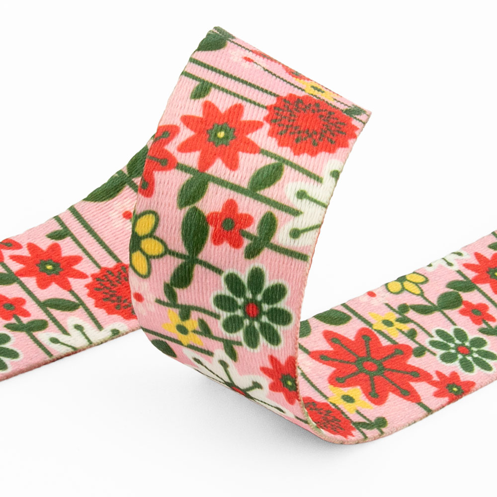 Gurtband Polyester bedruckt Flowers rosa 38mm