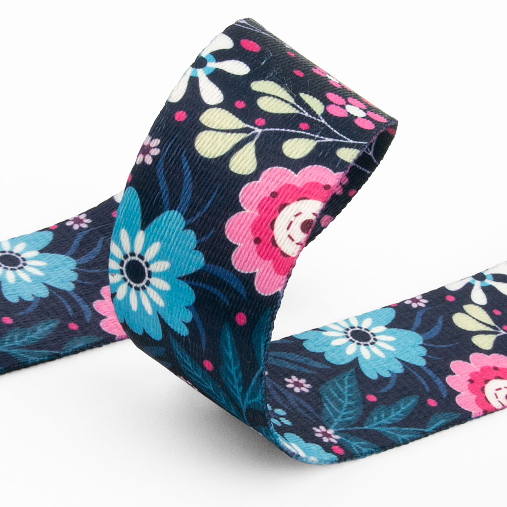 Gurtband Polyester bedruckt Flowers lila 38mm