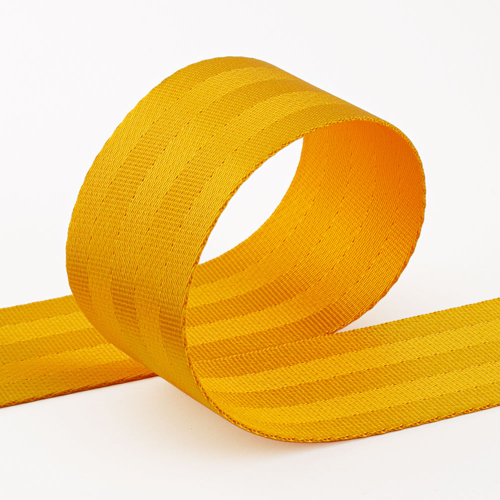 Polyester-Gurtband. Das 5-Streifen-Design verschafft dem Gurtband die typische Autogurt-Optik. Der 48 mm breite Sicherheitsgurt eignet sich bestens als stabiler Tragegurt an Umhängetaschen.
