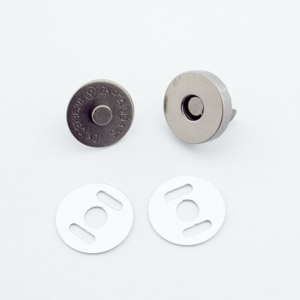 Der Magnetdruckknopf ist eine praktische Verschlussmöglichkeit für Taschen, Etuis und Geldbörsen. Die Magnetknöpfe können ohne Werkzeug auf Stoff, Plane oder Leder befestigt werden. Ein Knopf besteht aus zwei Verschlussteilen und zwei passenden Gegenscheiben zur Befestigung des Magnetverschlusses.