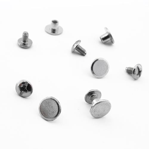 Gürtelschrauben/Buchschrauben mit 5mm Füllhöhe. Die Gürtelschraube wird mit dem Schraubendreher befestigt und verbindet Ledergürtel, Taschenriemen aus Leder und andere Sattlereiprodukte.