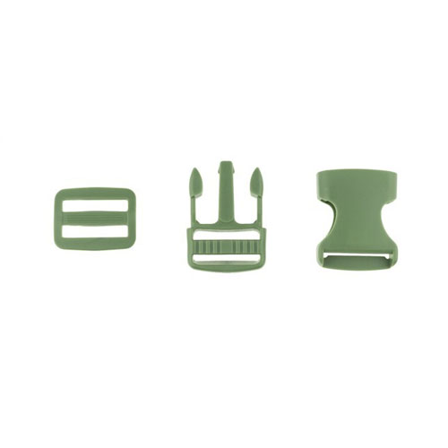 Praktische Steckschnalle aus Polyethylen mit passendem Regulierer für 25mm breite Bänder.
